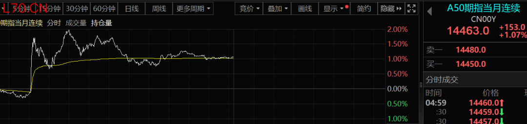 A50股指期货指数同样大幅走高,截至最新,涨幅超1%。