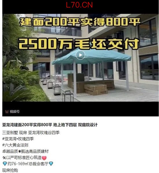 近期,在网上搜索“三亚玫瑰四季别墅”,会出现一批自媒体发布的亚龙湾玫瑰谷玫瑰四季项目的销售宣传信息。这些视频无一例外地将该项目冠以“三亚别墅”“独栋别墅”等名义。