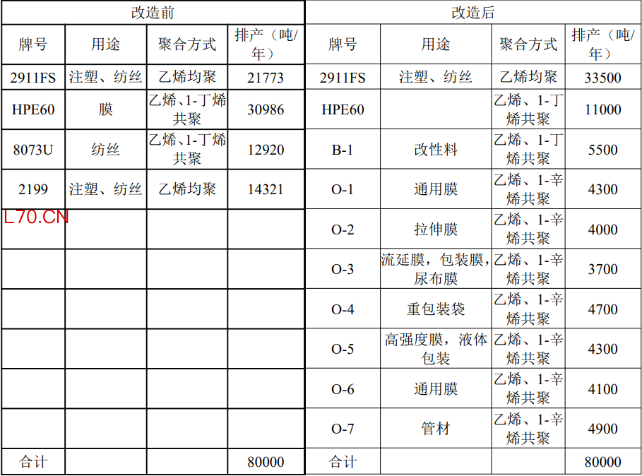 建设规模:将乙烯部现有 8 万 t/a 聚乙烯装置进行改造,使其达到能够生产辛烯共聚产品的能力,产能 8 万吨/年不变。