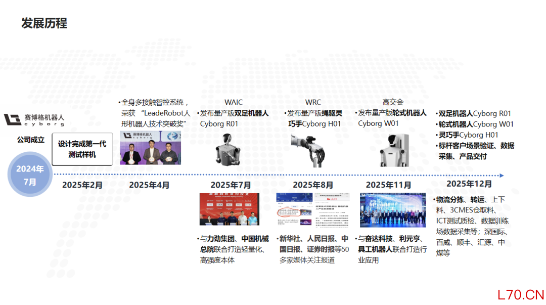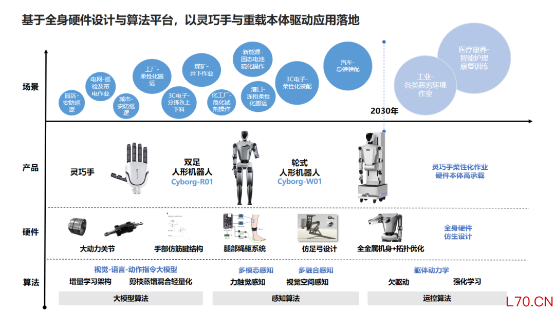2024年,赛博格机器人被授予深圳市南山区“科技型重点孵化企业”;2025年,自研的“博脑”端到端VLA2.0大模型架构获评“人形机器人技术突破奖”;公司获评深圳市工信局指导金燧石奖“机器人产业技术创新企业”和“机器人产业最具发展潜力企业”,是2025WAIC世界人工智能大会与WRC世界机器人大会100平方米以上规模展位参展企业。公司核心产品为全尺寸人形仿生机器人Cyborg-R01,面向工业运维与特种场景,具备62自由度和20kg双臂负载能力,搭载自研“博脑”智能系统与OMCI全身协同系统,仿生理念贯穿整体设计,为工业场景锻造出高自适应性的全身协同作业解决方案。
